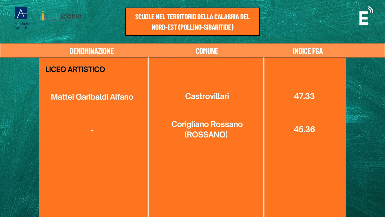 Nel confronto regionale, dietro Cassano troviamo anche il Colosimo di Corigliano (indice FGA 67.05), che si posiziona al sesto posto, mentre il San Nilo di Rossano (62.96) - e qui si assiepa uno dei risultati inaspettati di questo 2025 - che scende al tredicesimo posto: dati che raccontano non un declino, ma una competizione che si fa sempre più serrata nella terza città della Calabria e nel territorio