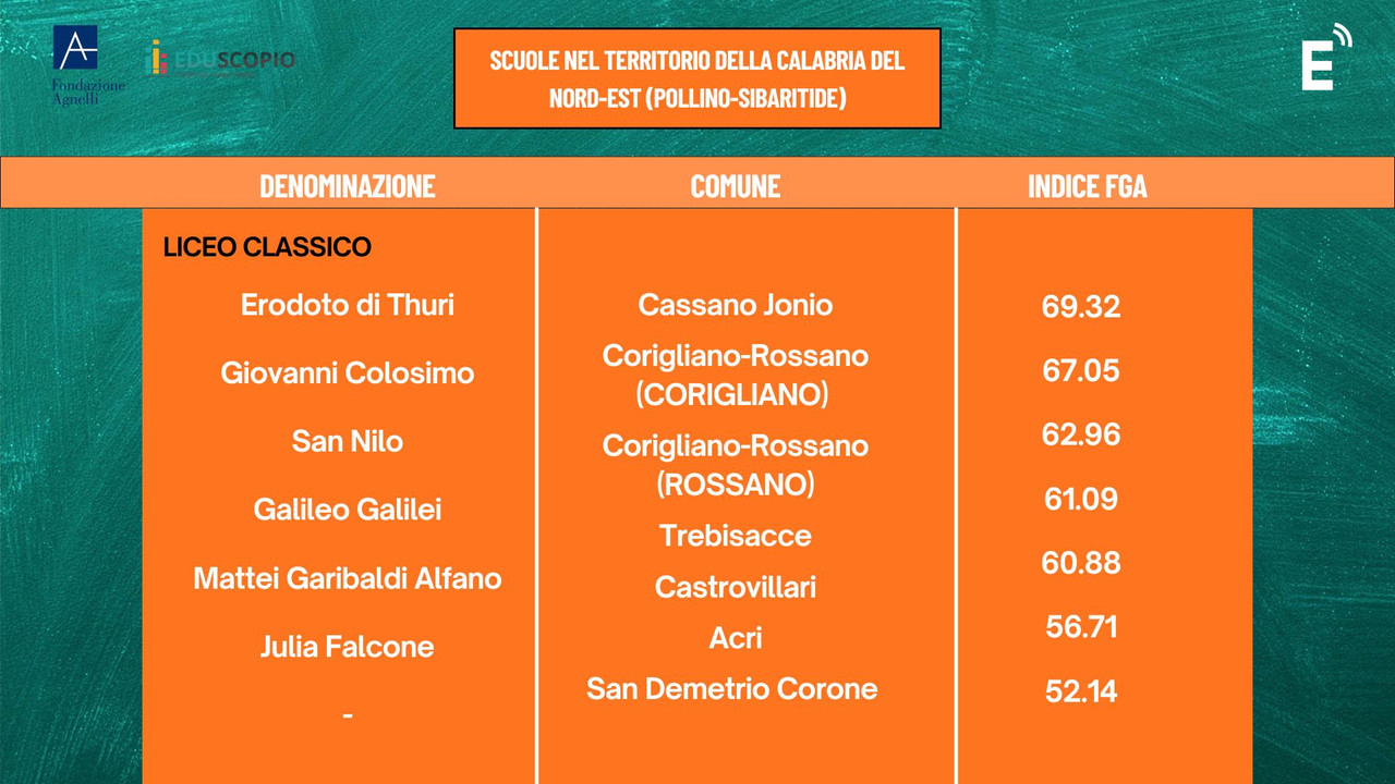 ma scendiamo subito nel territorio della Sibaritide-Pollino dove quest'anno non mancano sorprese (e conferme). La vera sorpresa del 2025, però, sta qui: la scuola migliore in assoluto del territorio non è un liceo classico ma un liceo scientifico.